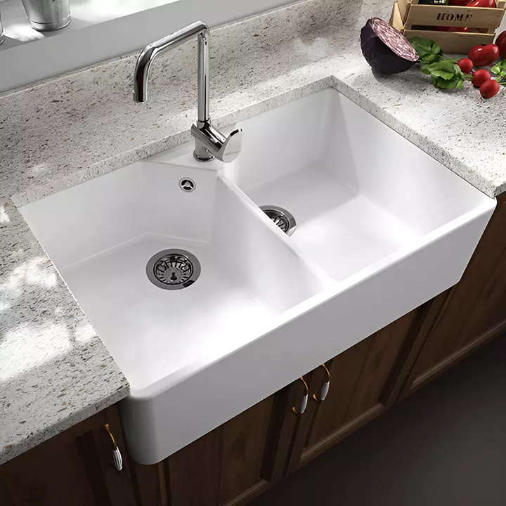 Banca Lava-Louça de Duas Cubas com Válvula FRAME HOUSE